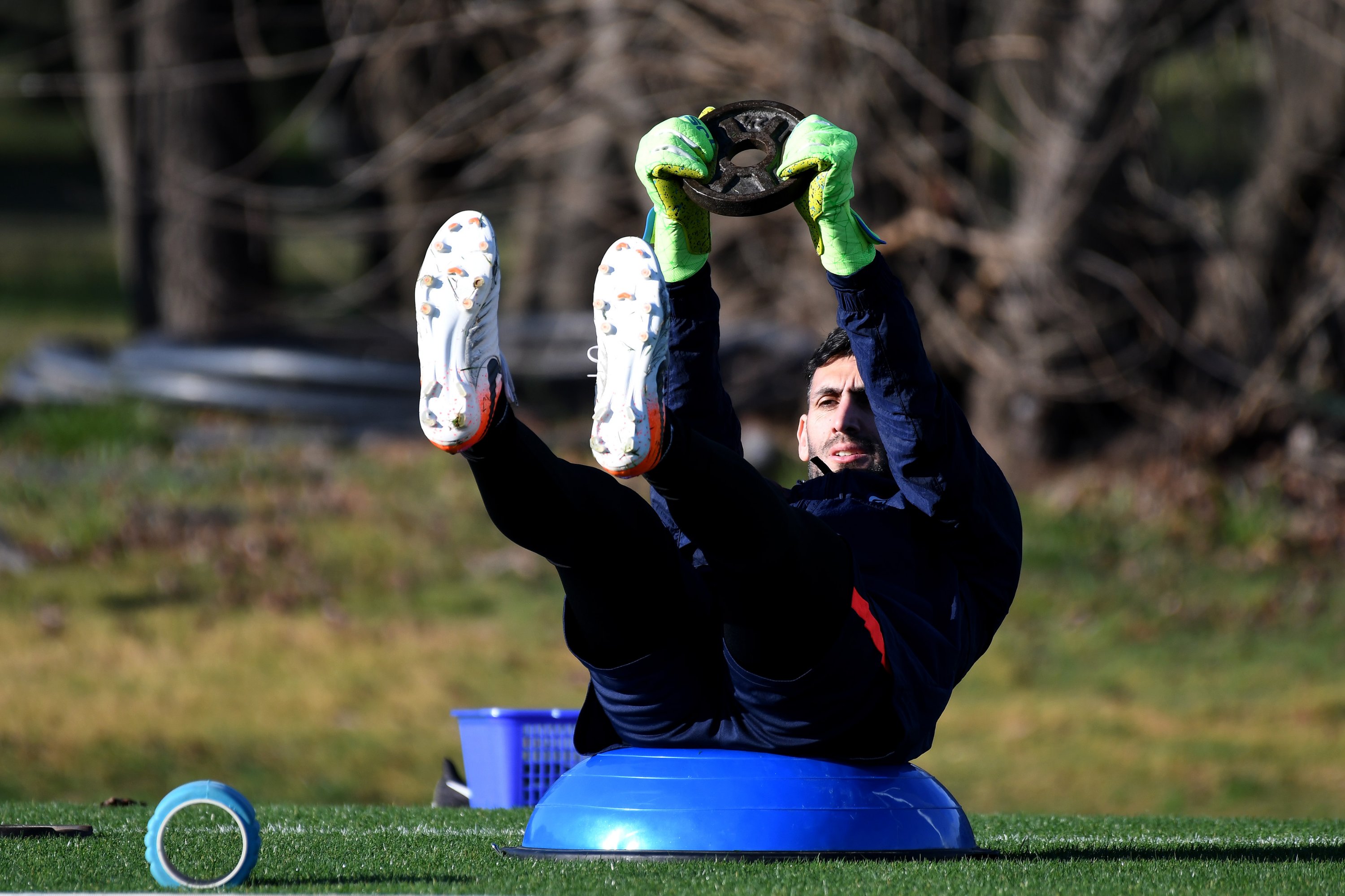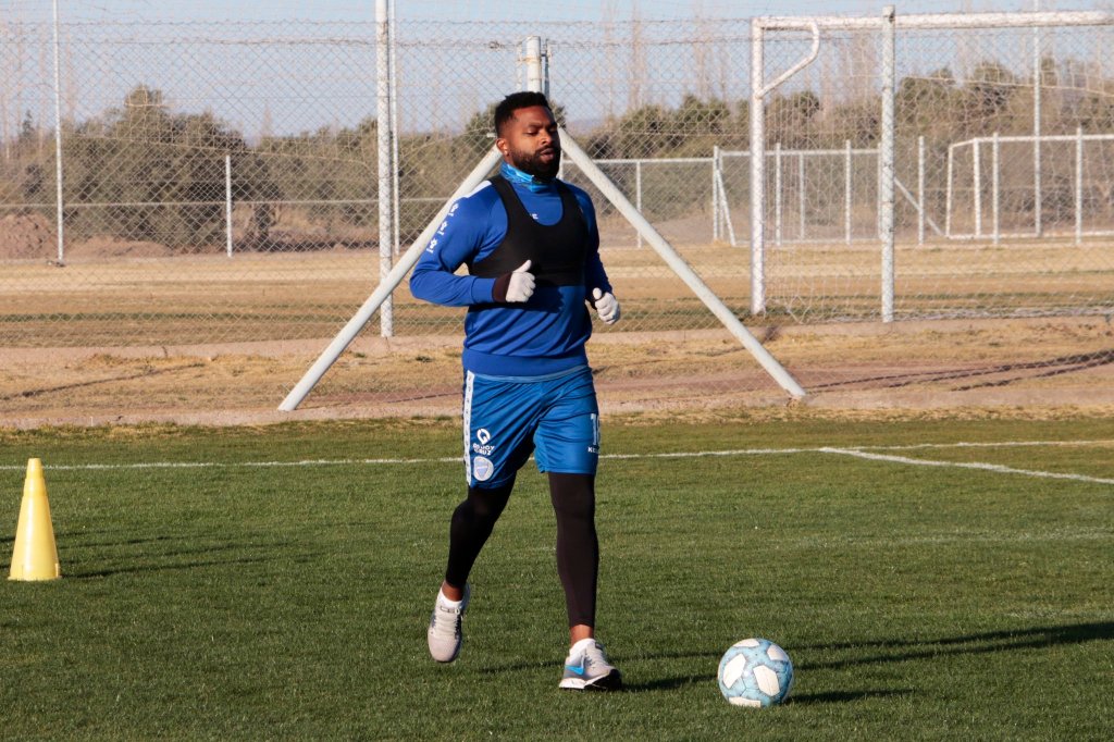 Godoy Cruz anfallare Santiago García var ordentligt påpälsad med såväl långkalsonger som vantar när träningen drog igång igen. Mendoza kan tydligen vara kyligt i juli månad.