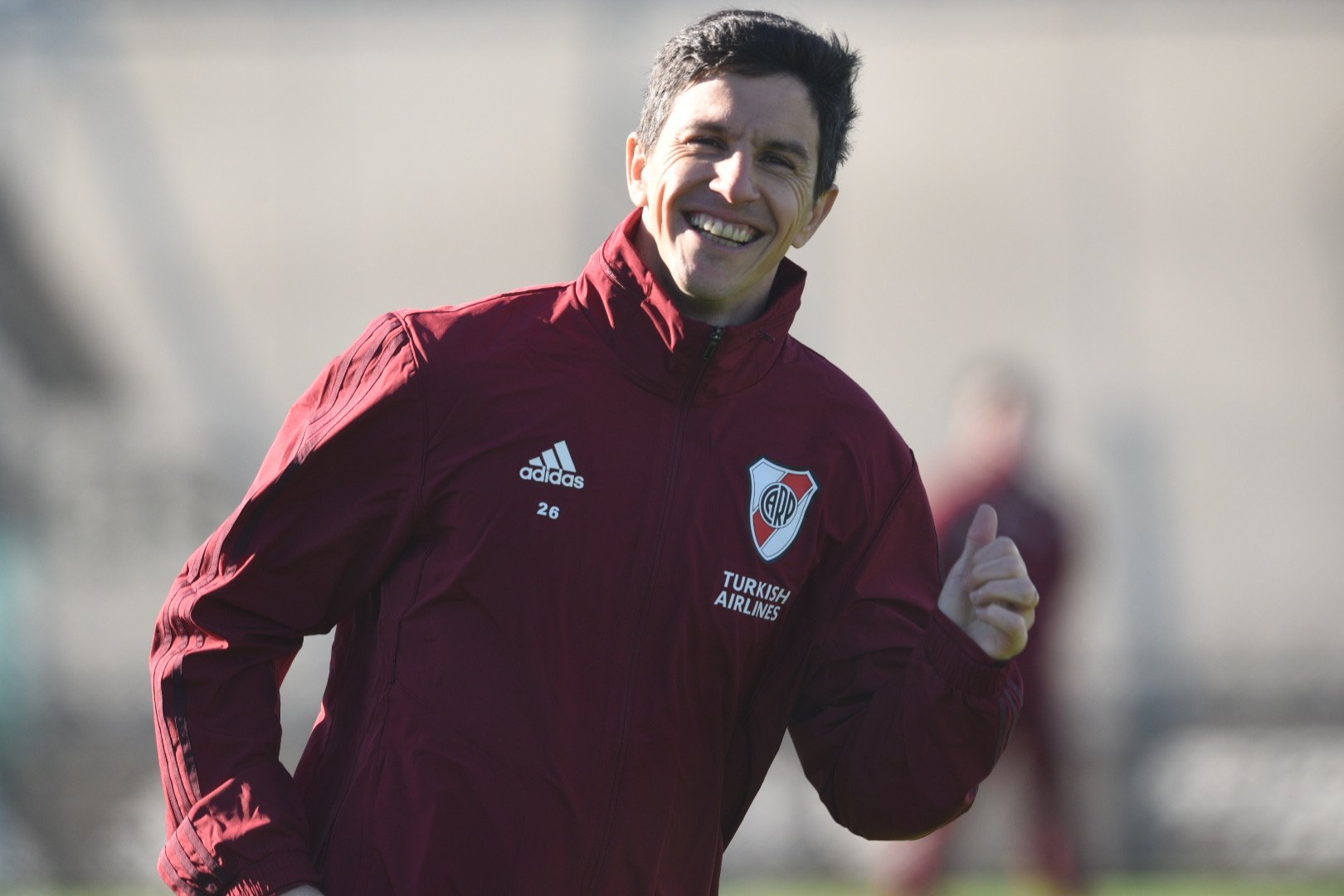 River Plates Nacho Fernández såg både pigg och glad ut under River Plates träningspass. Mittfältaren har tillhört ligans bästa spelare på sin position under dom senaste säsongerna.